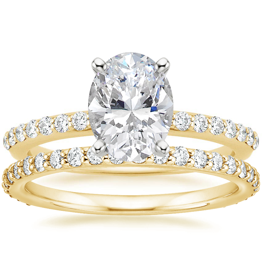 18K Yellow Gold Petite Shared Prong Diamond Ring (1/4 ct. tw.) with Eternity Petite Shared Prong Diamond Ring (1/2 ct. tw.)