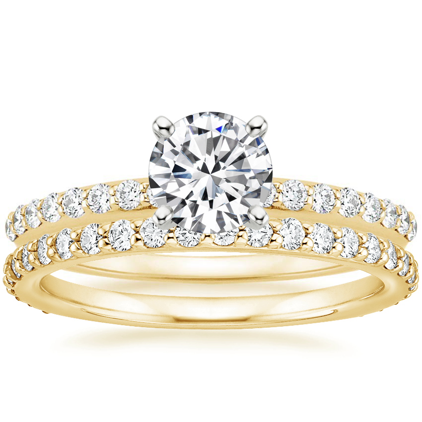 18K Yellow Gold Petite Shared Prong Diamond Ring (1/4 ct. tw.) with Eternity Petite Shared Prong Diamond Ring (1/2 ct. tw.)