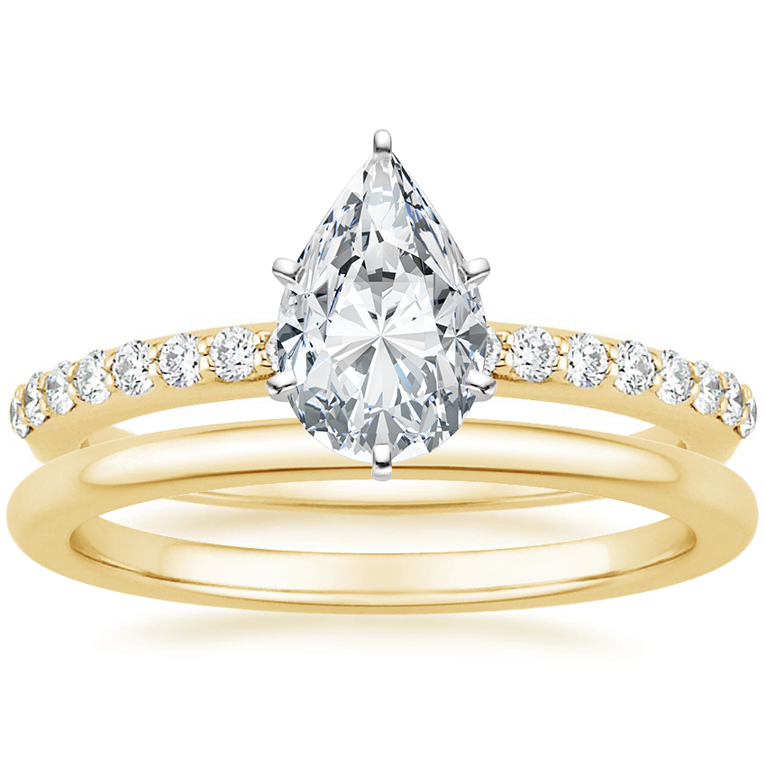 18K Yellow Gold Petite Shared Prong Diamond Ring (1/4 ct. tw.) with Petite Comfort Fit Wedding Ring