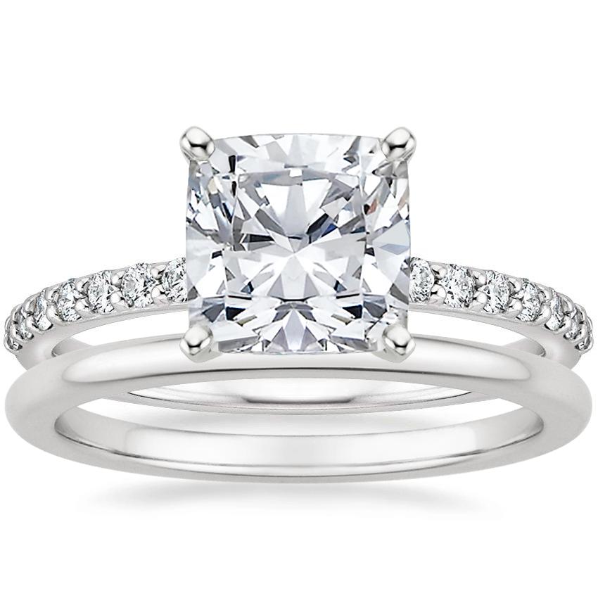 Petite Shared Prong Diamond Ring (1/4 ct. tw.) with Petite Comfort Fit Wedding Ring in Platinum