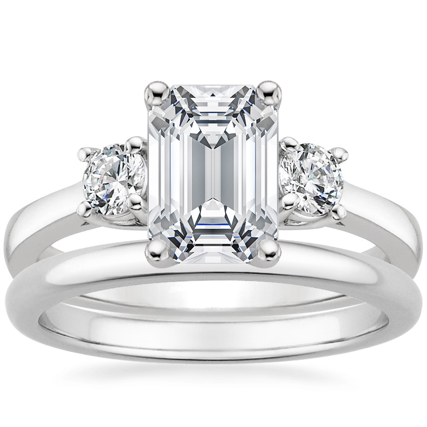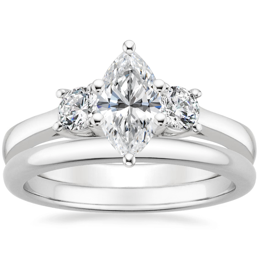 Platinum Petite Three Stone Trellis Ring (1/3 ct. tw.) with 2mm Comfort Fit Wedding Ring
