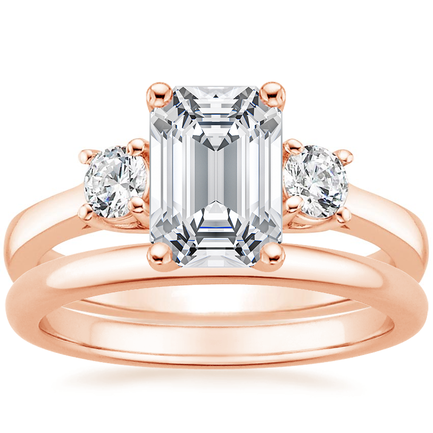 14K Rose Gold Petite Three Stone Trellis Ring (1/3 ct. tw.) with 2mm Comfort Fit Wedding Ring