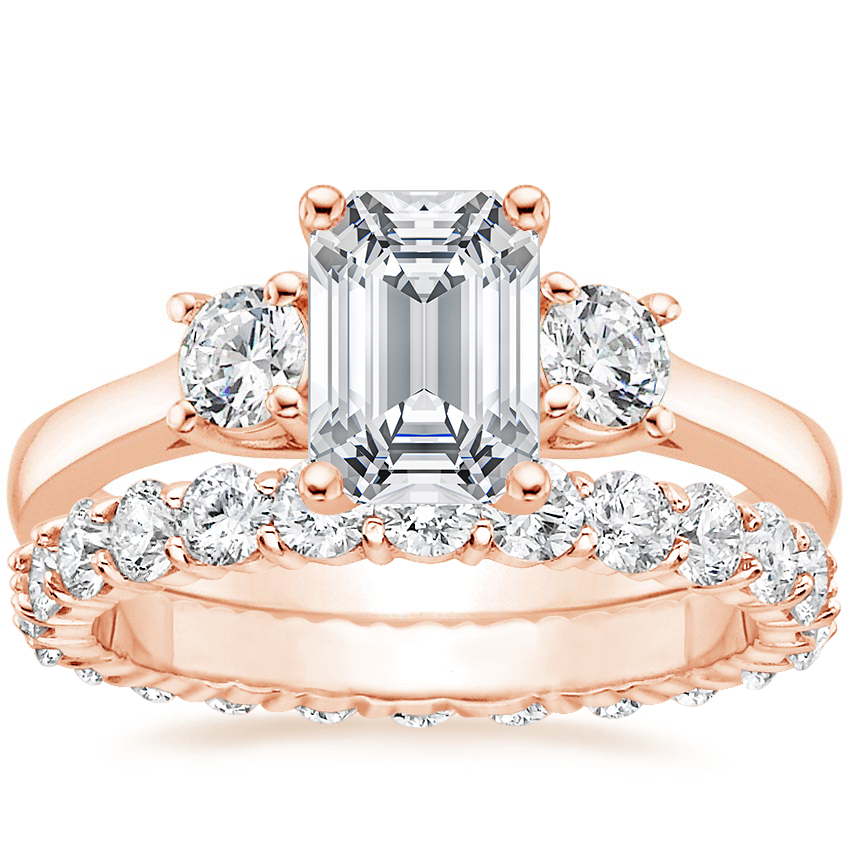 14K Rose Gold Petite Three Stone Trellis Ring (1/3 ct. tw.) with Diamond Eternity Ring (1 1/3 ct. tw.)