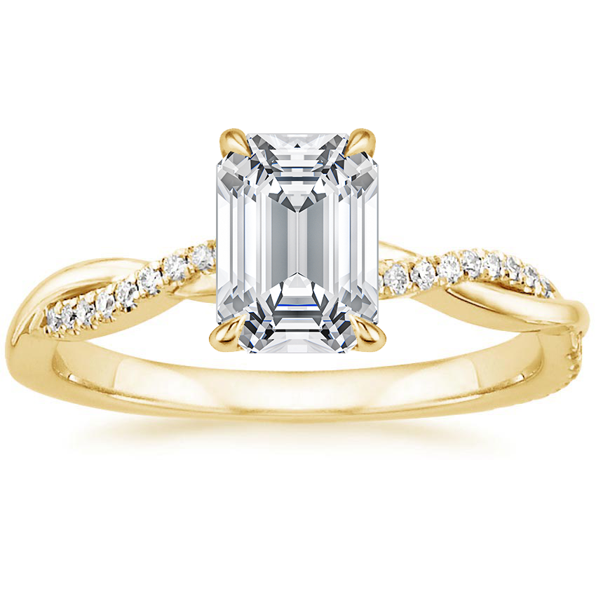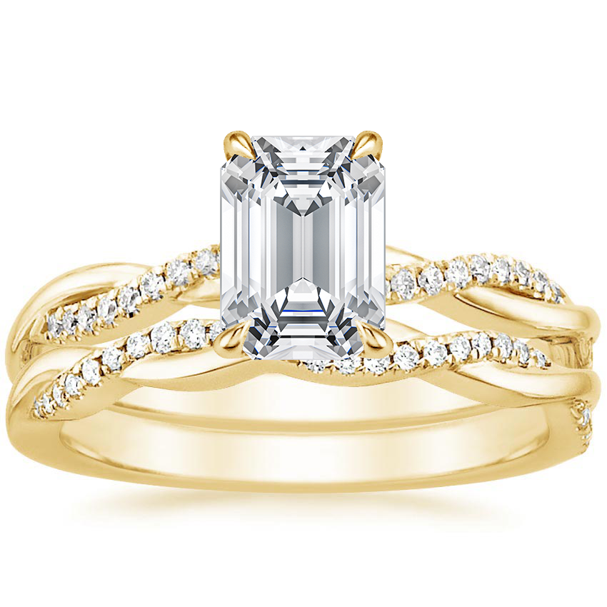 18K Yellow Gold Petite Twisted Vine Diamond Bridal Set (1/4 ct. tw.) with 0.92 Carat Emerald Diamond