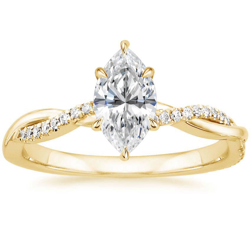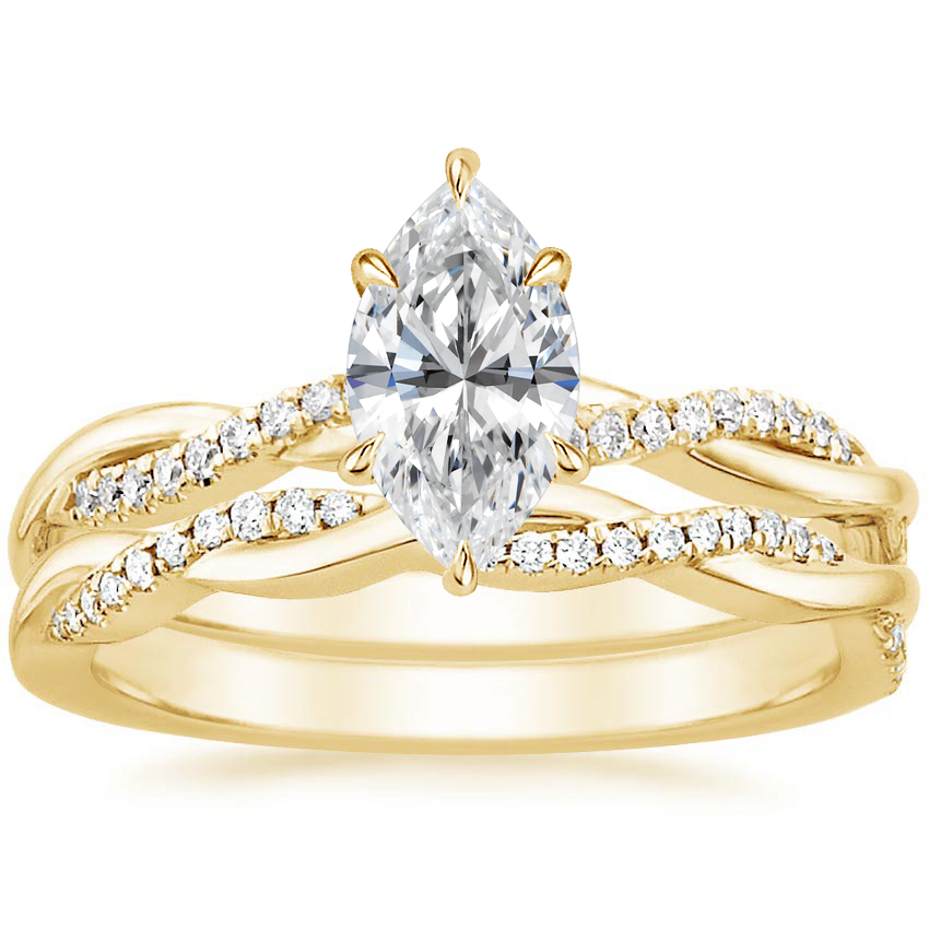 18K Yellow Gold Petite Twisted Vine Diamond Bridal Set (1/4 ct. tw.) with 0.37 Carat Marquise Diamond