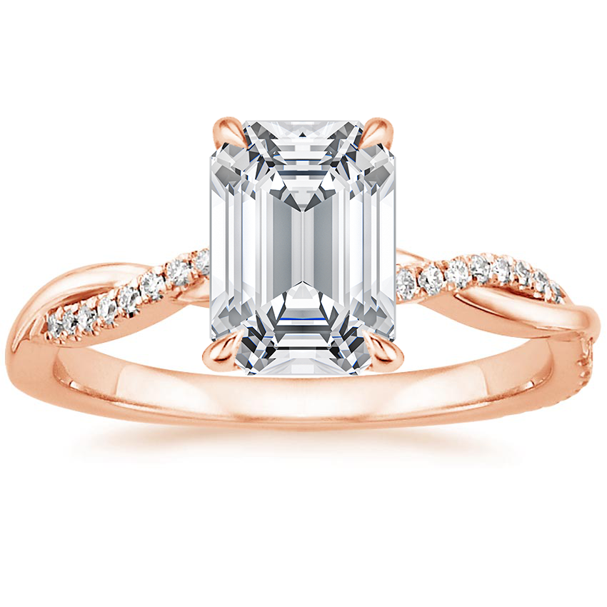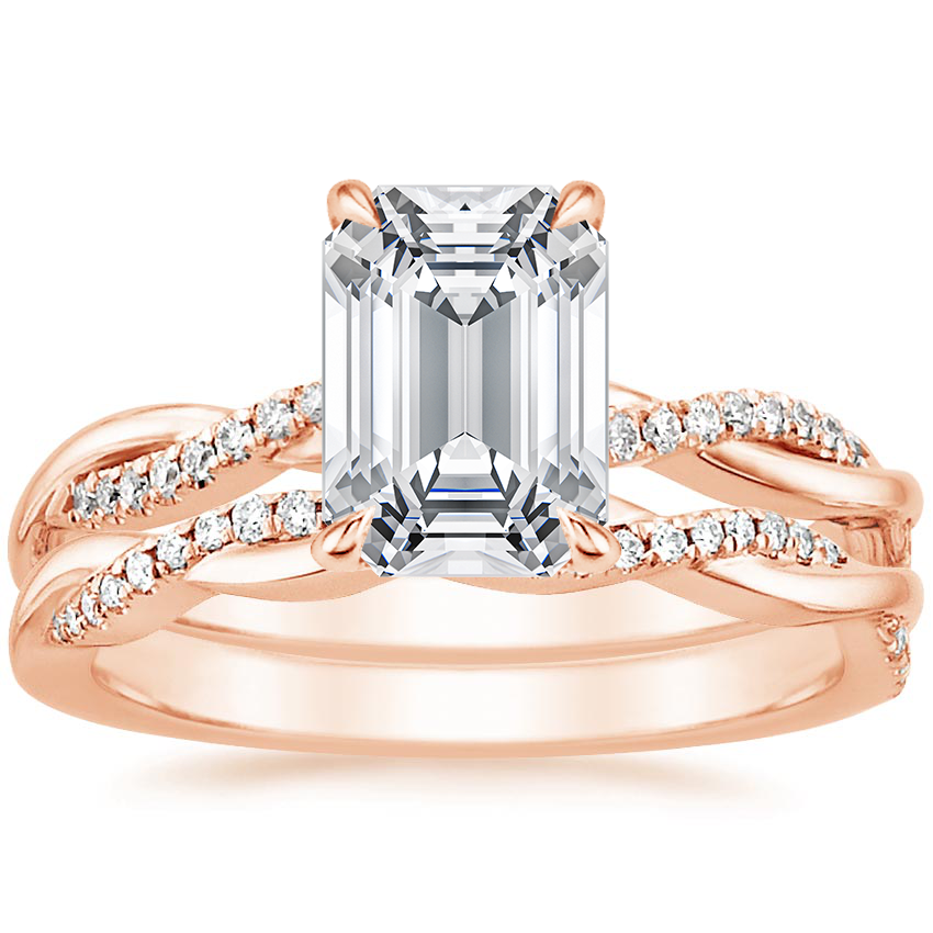 14K Rose Gold Petite Twisted Vine Lab Diamond Bridal Set (1/4 ct. tw.) with 1.56 Carat Emerald Lab Grown Diamond