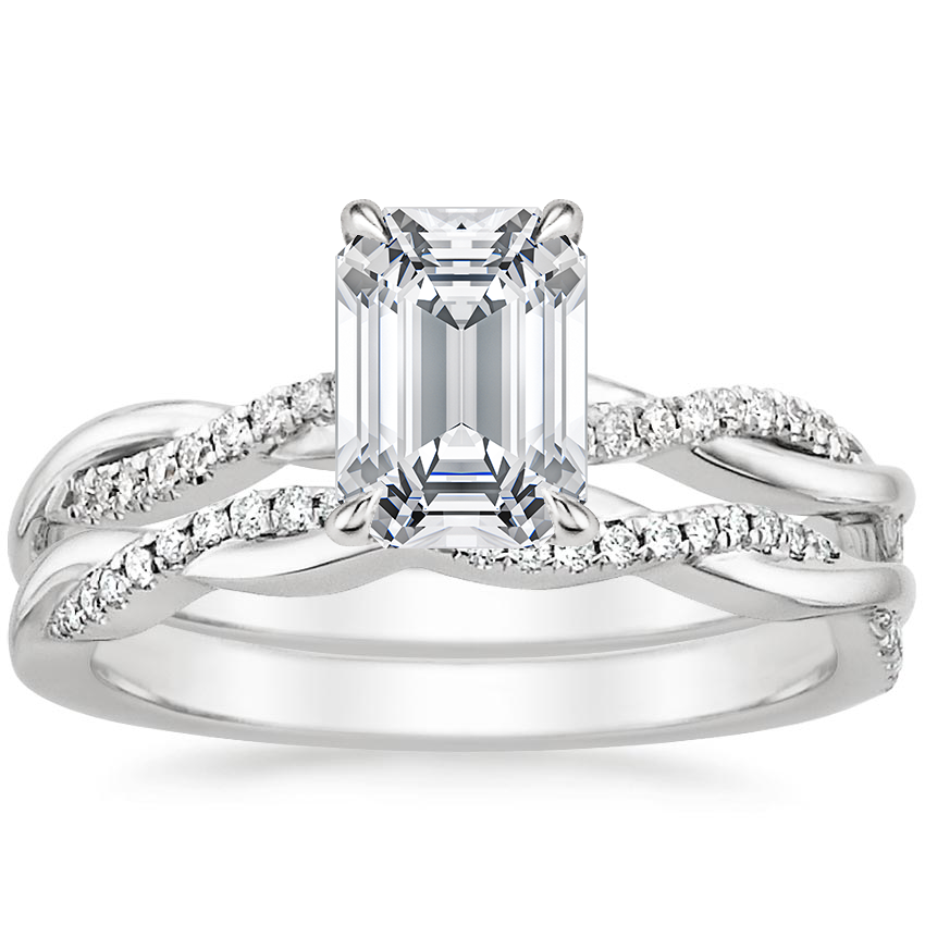 18K White Gold Petite Twisted Vine Diamond Bridal Set (1/4 ct. tw.) with 0.92 Carat Emerald Diamond