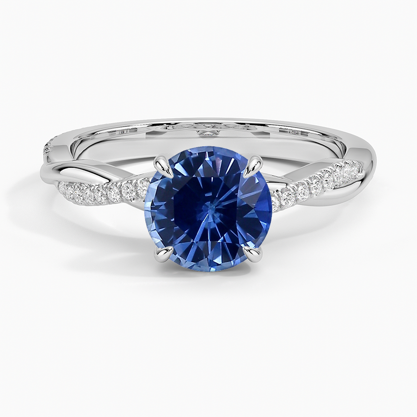 18K White Gold Petite Twisted Vine Diamond Ring (1/8 ct. tw.) with 6.9x6.8mm Blue Round Sapphire