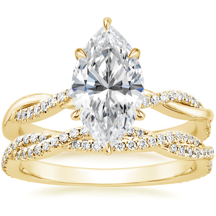 18K Yellow Gold Petite Twisted Vine Diamond Ring (1/8 ct. tw.) with Petite Luxe Twisted Vine Diamond Ring (1/3 ct. tw.)
