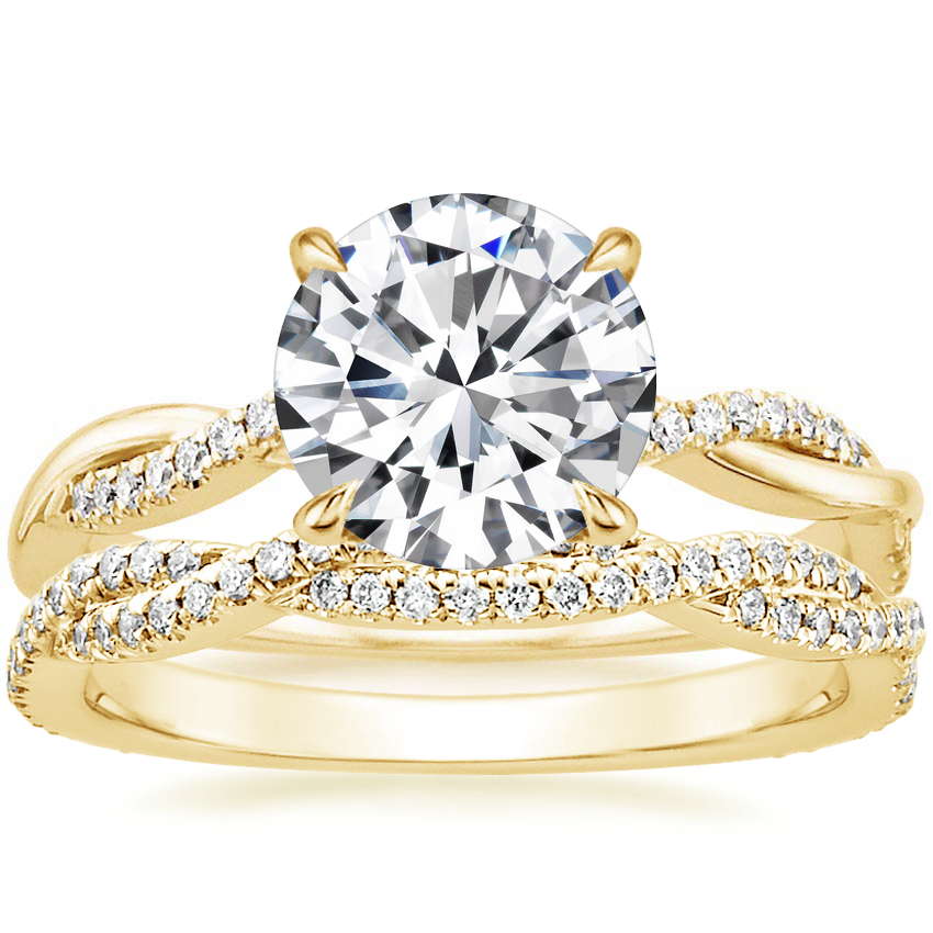 18K Yellow Gold Petite Twisted Vine Lab Diamond Ring (1/8 ct. tw.) with Petite Luxe Twisted Vine Diamond Ring (1/3 ct. tw.) with 2.0 Carat Round Lab Grown Diamond