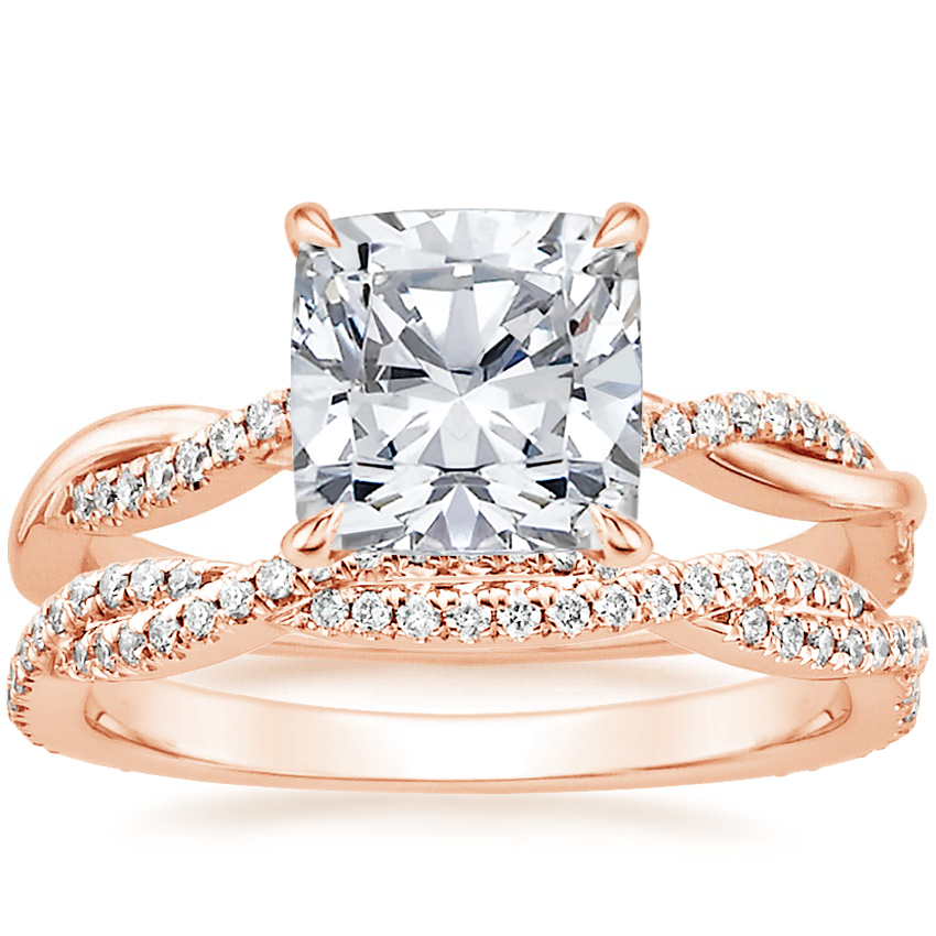 14K Rose Gold Petite Twisted Vine Lab Diamond Ring (1/8 ct. tw.) with Petite Luxe Twisted Vine Diamond Ring (1/3 ct. tw.) with 2.5 Carat Cushion Lab Grown Diamond