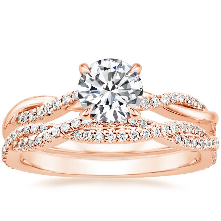 14K Rose Gold Petite Twisted Vine Lab Diamond Ring (1/8 ct. tw.) with Petite Luxe Twisted Vine Diamond Ring (1/3 ct. tw.) with 0.5 Carat Round Lab Grown Diamond