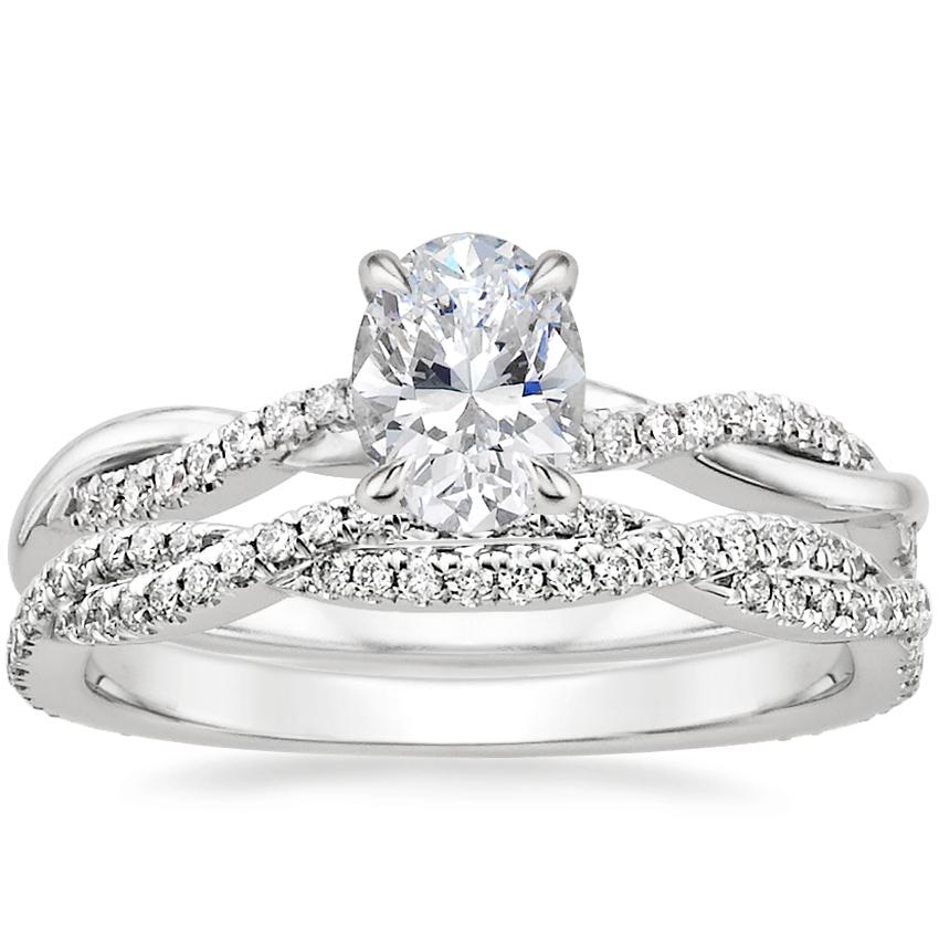 18K White Gold Petite Twisted Vine Diamond Ring (1/8 ct. tw.) with Petite Luxe Twisted Vine Diamond Ring (1/3 ct. tw.)