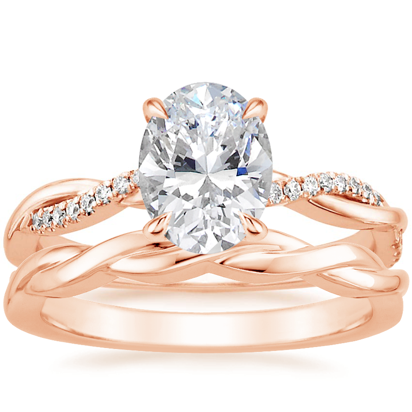14K Rose Gold Petite Twisted Vine Diamond Ring (1/8 ct. tw.) with Twisted Vine Ring with 1.5 Carat Oval Diamond