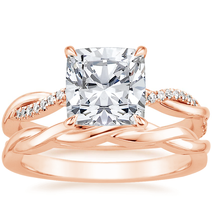 14K Rose Gold Petite Twisted Vine Lab Diamond Ring (1/8 ct. tw.) with Twisted Vine Ring with 2.5 Carat Cushion Lab Grown Diamond