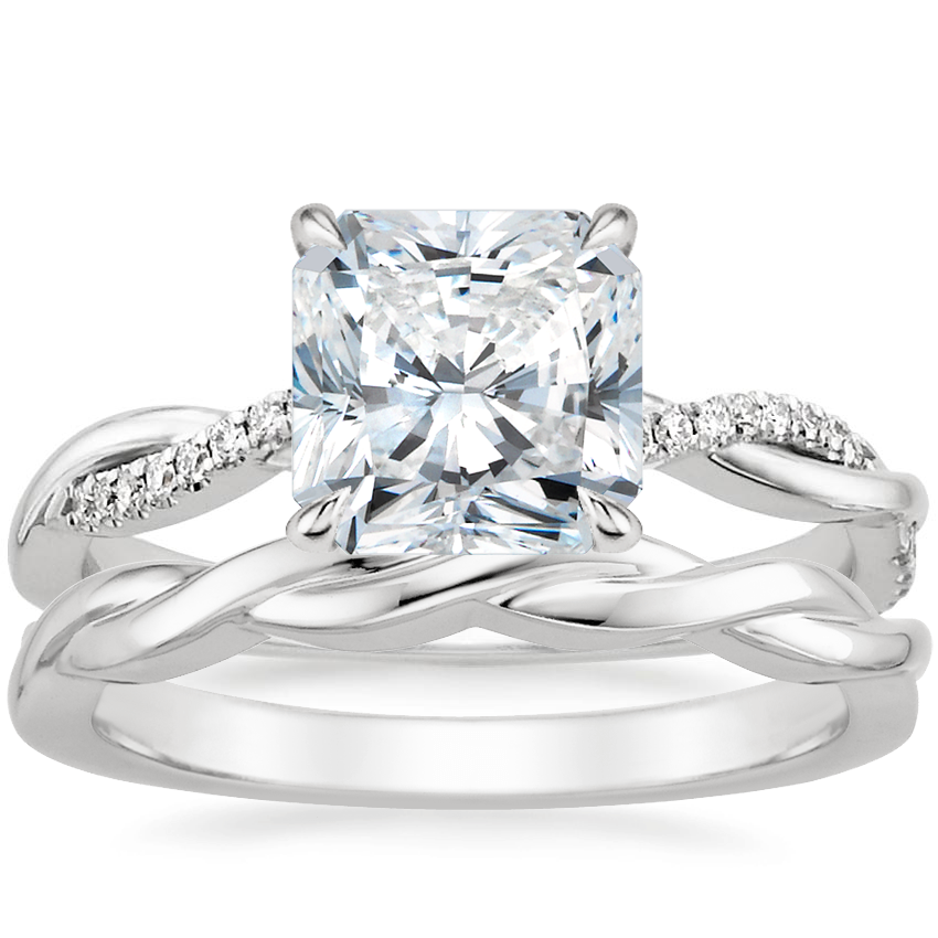 18K White Gold Petite Twisted Vine Diamond Ring (1/8 ct. tw.) with Twisted Vine Ring with 1.01 Carat Radiant Diamond