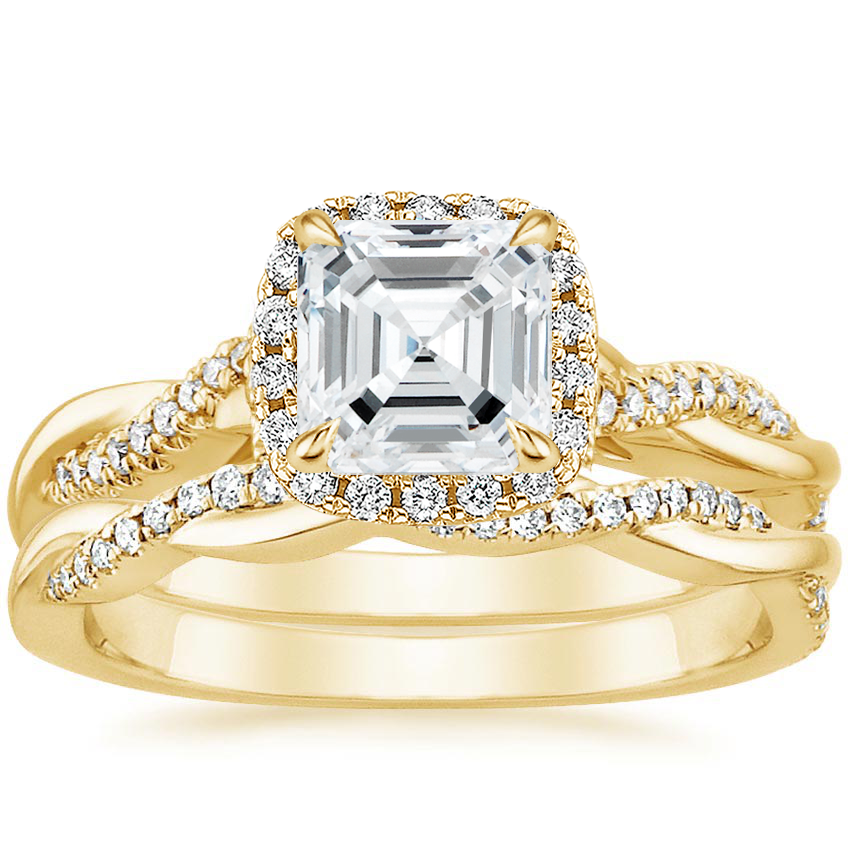 14K Yellow Gold Petite Twisted Vine Halo Diamond Bridal Set (1/3 ct. tw.)