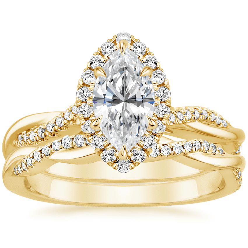18K Yellow Gold Petite Twisted Vine Halo Diamond Bridal Set (1/3 ct. tw.)