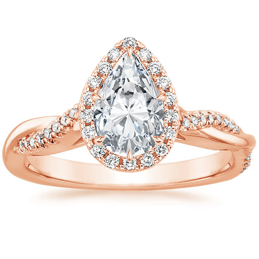 14K Rose Gold Petite Twisted Vine Halo Diamond Bridal Set (1/3 ct. tw.) with 0.4 Carat Pear Diamond