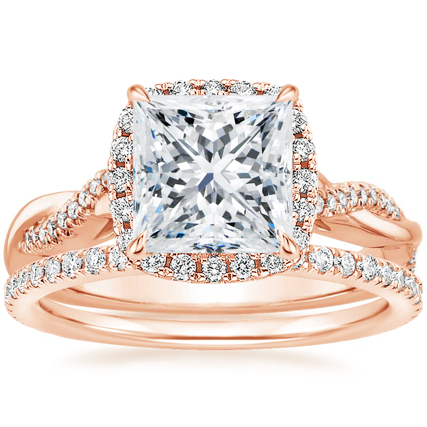 Petite Twisted Vine Halo Diamond Ring (1/4 ct. tw.) with Luxe Ballad Diamond Ring (1/4 ct. tw.) in 14K Rose Gold