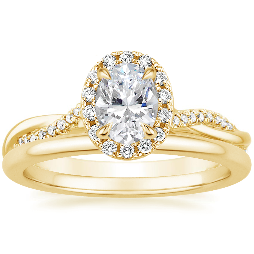 18K Yellow Gold Petite Twisted Vine Halo Diamond Ring (1/4 ct. tw.) with Petite Comfort Fit Wedding Ring