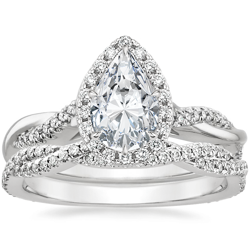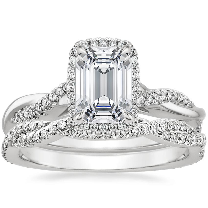 18K White Gold Petite Twisted Vine Halo Diamond Ring (1/4 ct. tw.) with Petite Luxe Twisted Vine Diamond Ring
