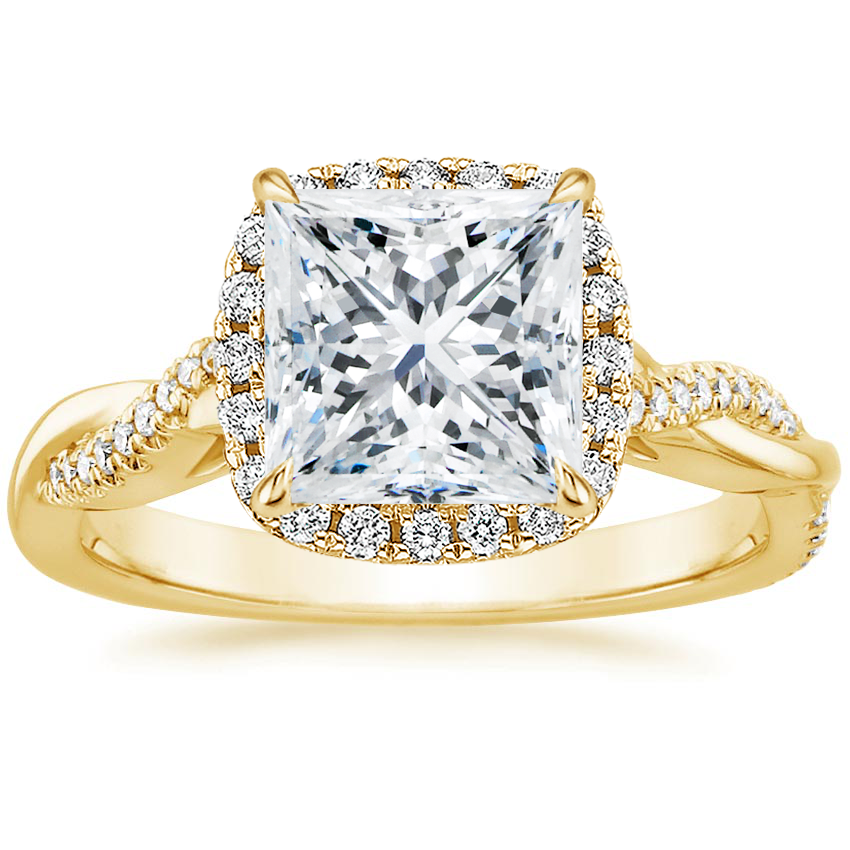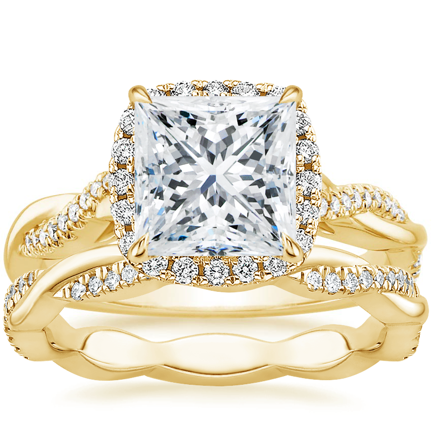 18K Yellow Gold Petite Twisted Vine Halo Diamond Ring (1/4 ct. tw.) with Petite Twisted Vine Eternity Diamond Ring (1/5 ct. tw.)