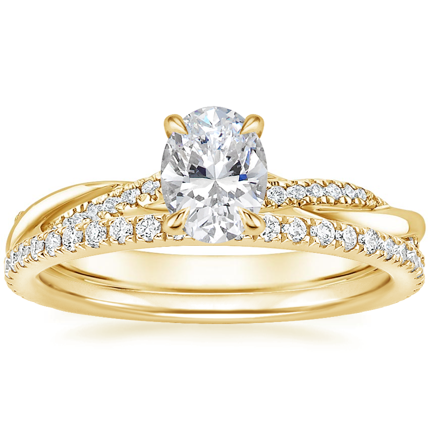 18K Yellow Gold Petite Twisted Vine Hidden Halo Diamond Ring with Luxe Ballad Diamond Ring (1/4 ct. tw.)