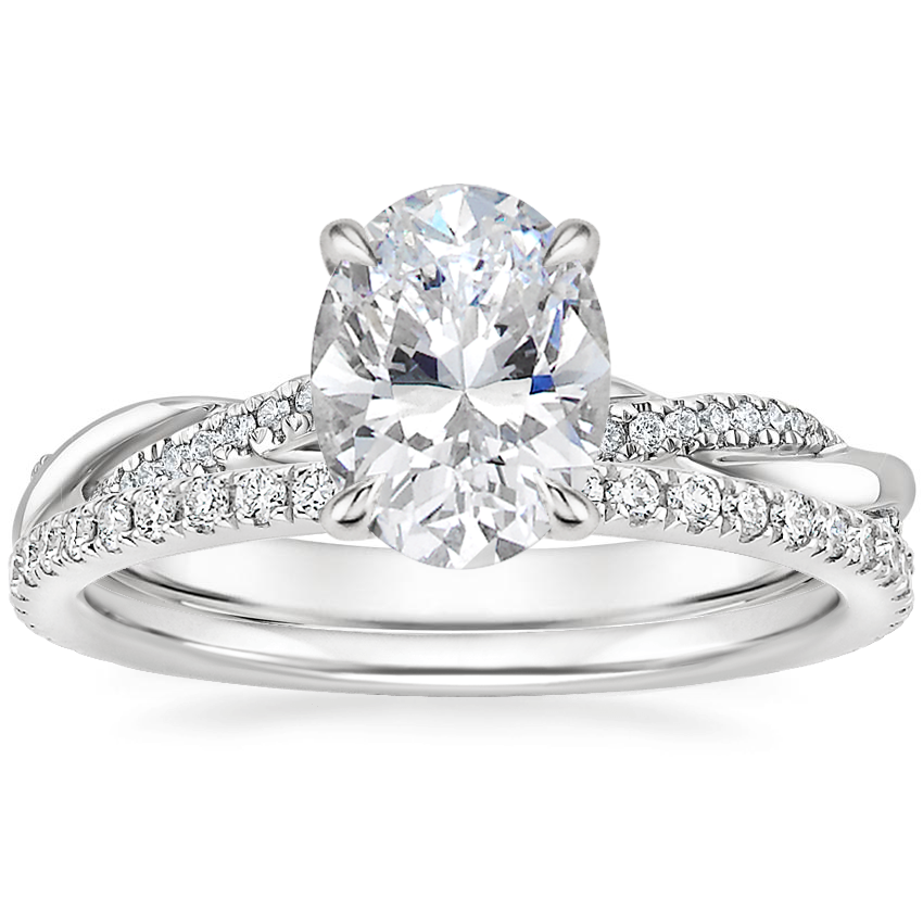 Platinum Petite Twisted Vine Hidden Halo Diamond Ring with Luxe Ballad Diamond Ring (1/4 ct. tw.) with 1.21 Carat Oval Diamond