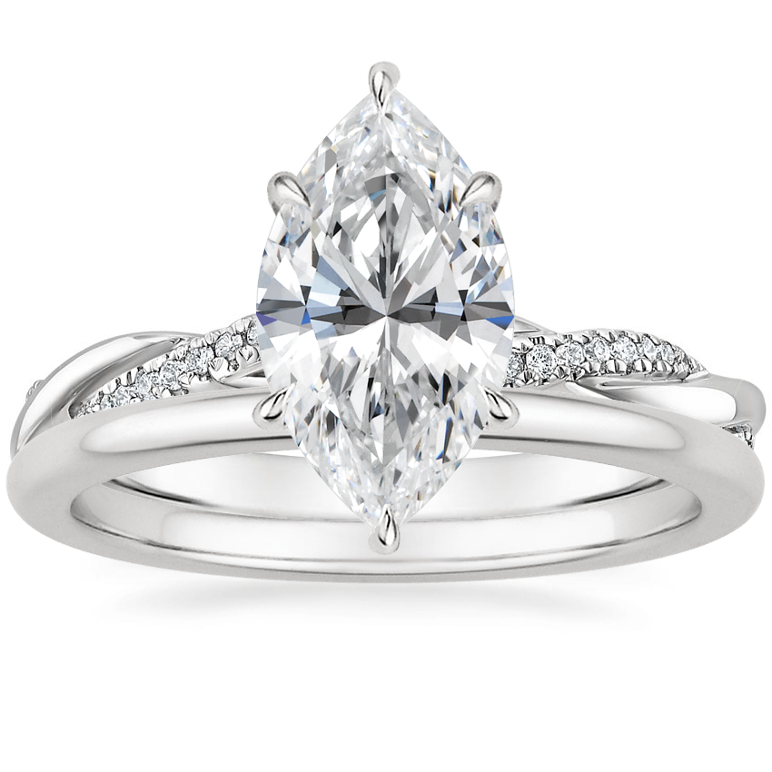 Petite Twisted Vine Hidden Halo Diamond Ring with Petite Comfort Fit Wedding Ring in 18K White Gold