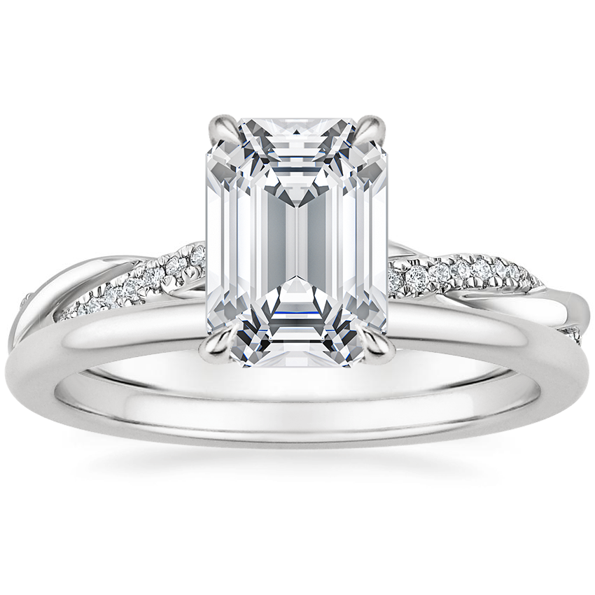 18K White Gold Petite Twisted Vine Hidden Halo Diamond Ring with Petite Comfort Fit Wedding Ring