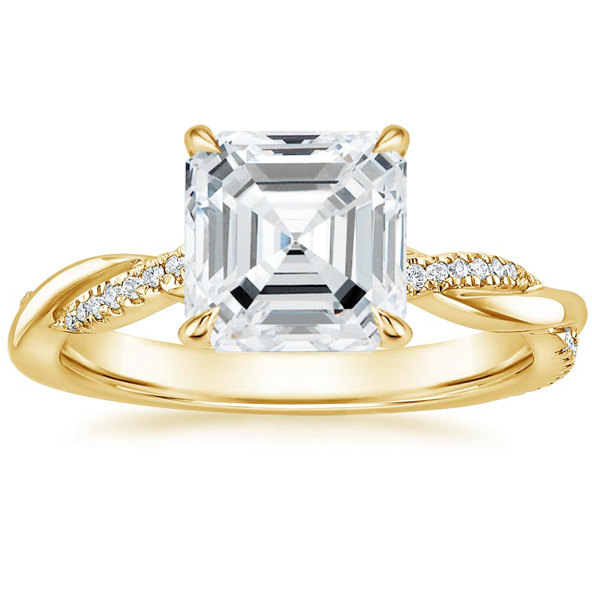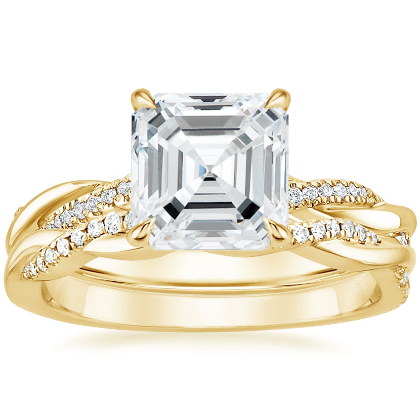 18K Yellow Gold Petite Twisted Vine Hidden Halo Diamond Ring with Petite Twisted Vine Diamond Ring (1/8 ct. tw.)