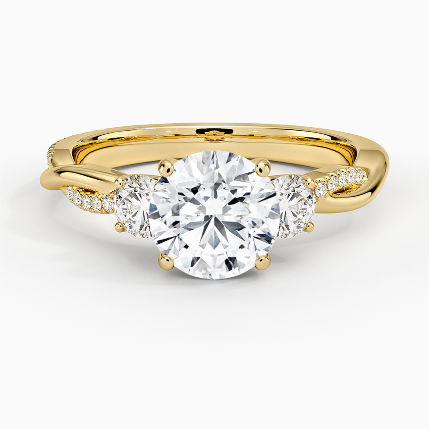 18K Yellow Gold Petite Twisted Vine Three Stone Lab Diamond Ring (2/5 ct. tw.) with 1.35 Carat Round Lab Grown Diamond