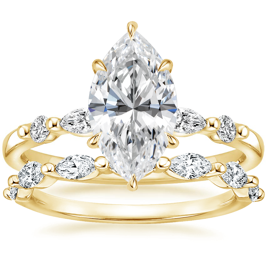 Petite Versailles Diamond Ring (1/6 ct. tw.) with Joelle Diamond Ring in 18K Yellow Gold