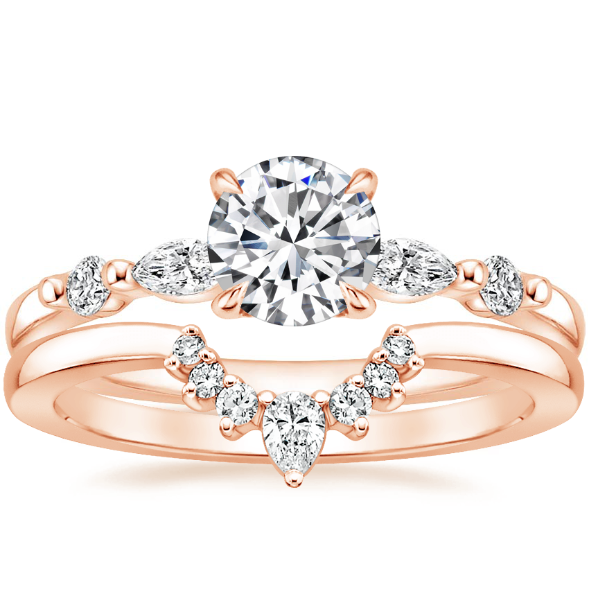 14K Rose Gold Petite Versailles Diamond Ring (1/6 ct. tw.) with Lunette Diamond Ring