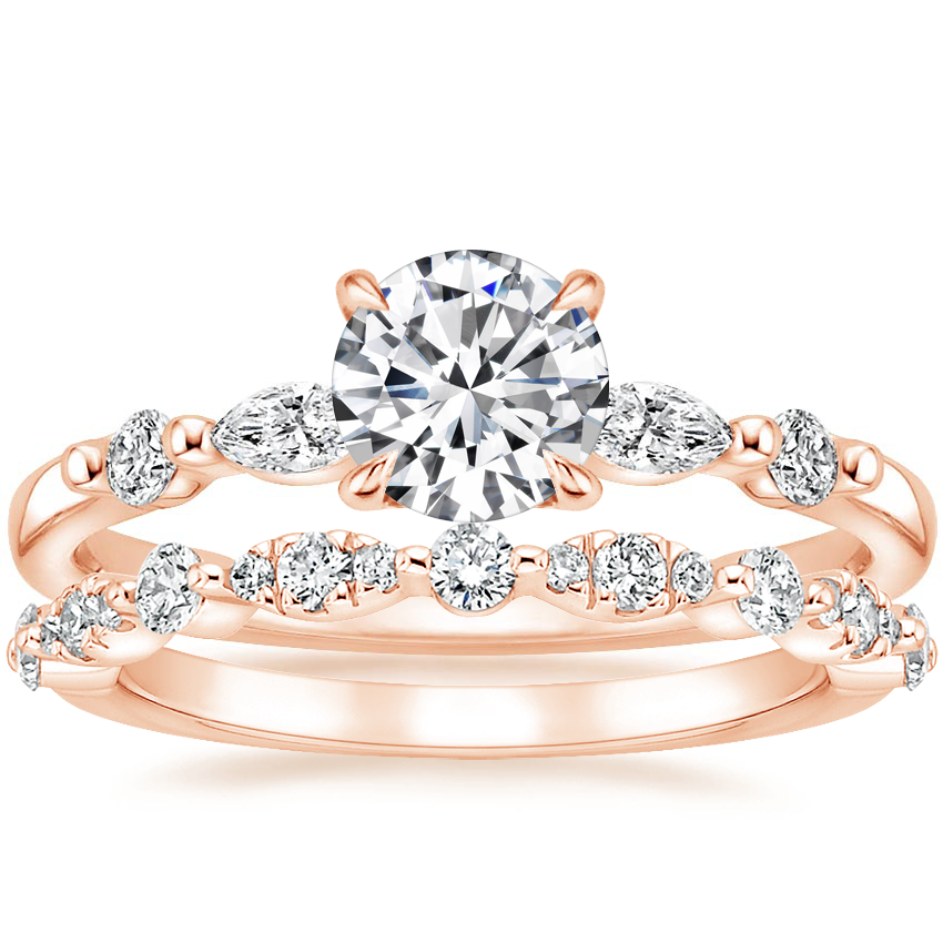 14K Rose Gold Petite Versailles Diamond Ring (1/6 ct. tw.) with Odette Diamond Ring (1/4 ct. tw.)