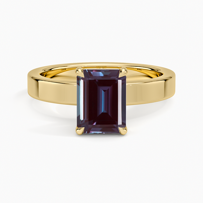 18K Yellow Gold Peyton 3mm Solitaire Ring with 8x6mm Color Change Emerald Lab Grown Alexandrite