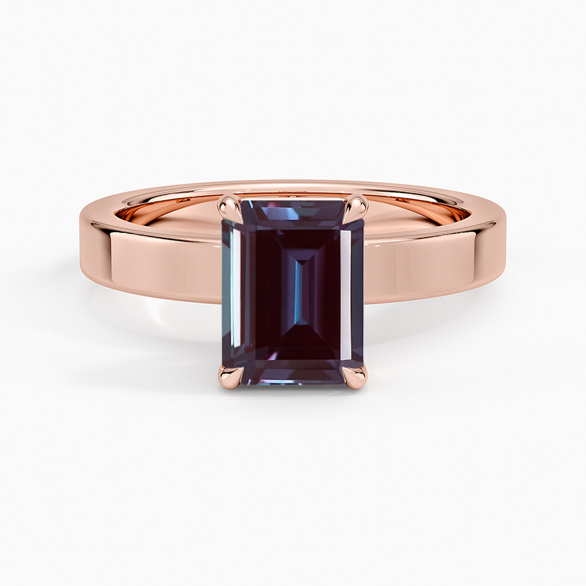 14K Rose Gold Peyton 3mm Solitaire Ring with 8x6mm Color Change Emerald Lab Grown Alexandrite