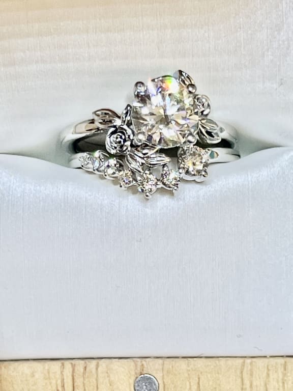I love this ring because it fits perfectly with my engagement ring, my engagement ring has roses on the sides and it was difficult to find a wedding band that fits, plus is so pretty, it enhances my engagement ring ...Read More