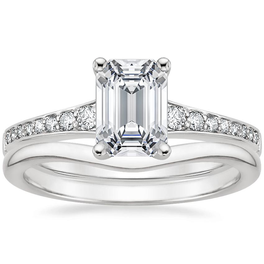 18K White Gold Poetica Diamond Ring with Petite Curved Wedding Ring