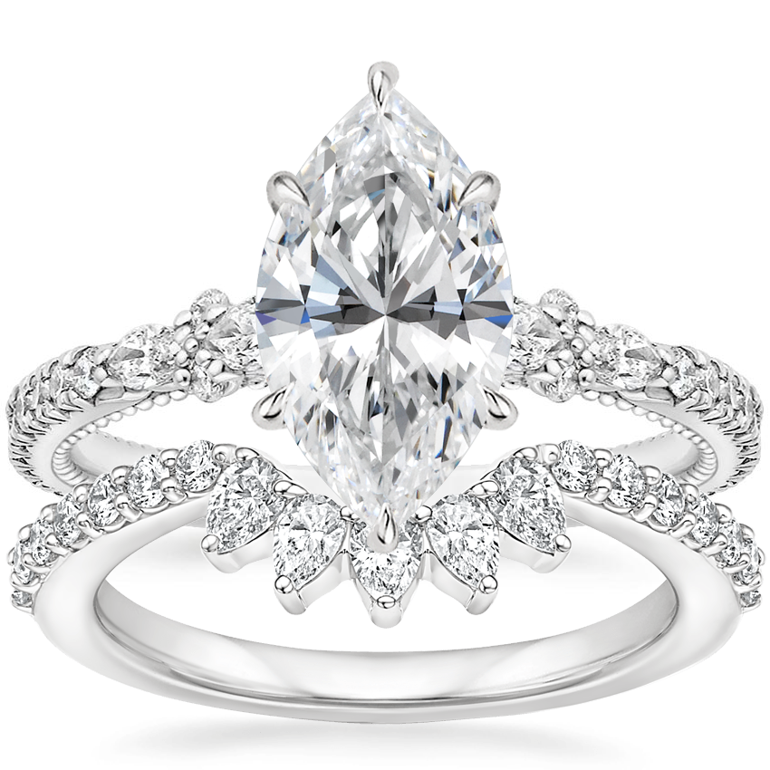18K White Gold Primrose Diamond Ring with Luxe Pear Lunette Diamond Ring