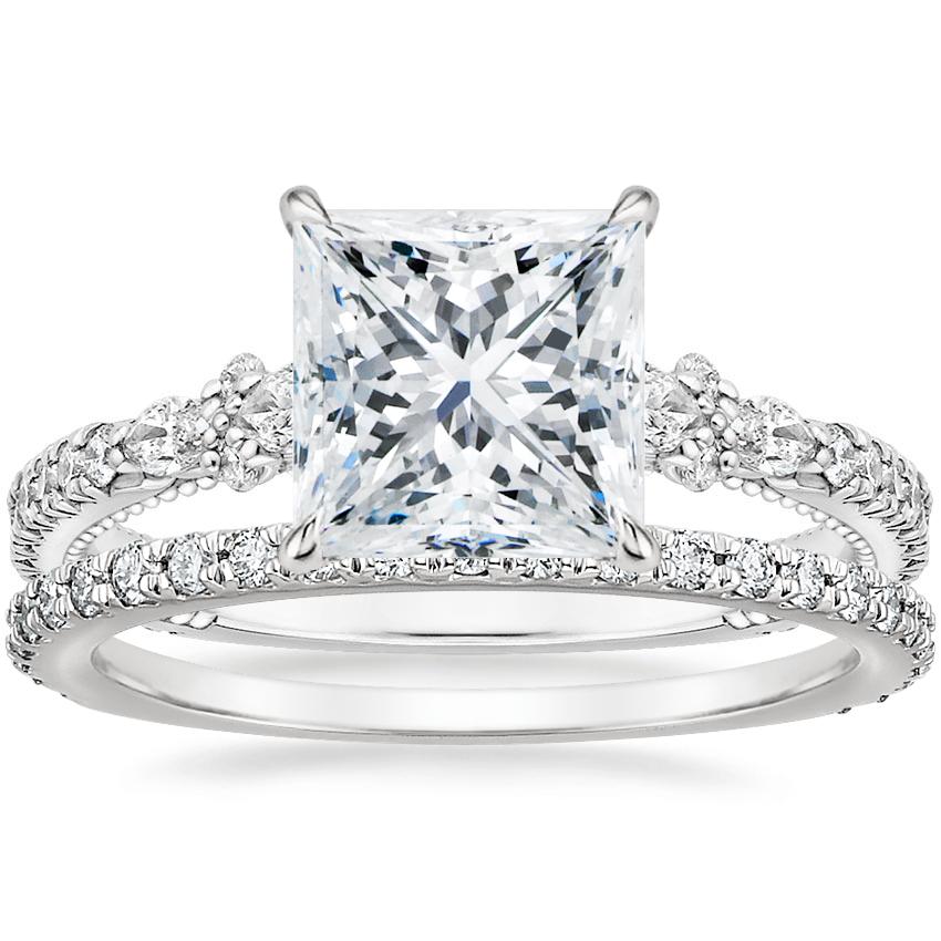 18K White Gold Primrose Lab Diamond Ring with Luxe Sonora Diamond Ring (1/4 ct. tw.) with 2.09 Carat Princess Lab Grown Diamond