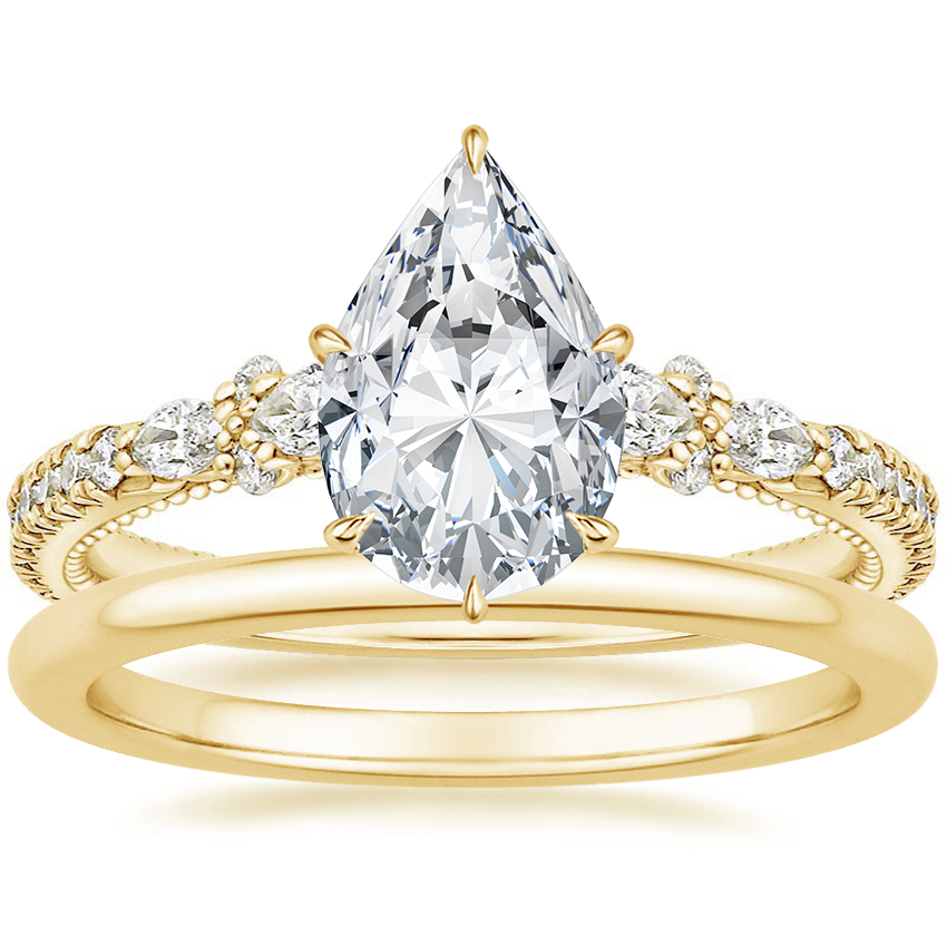Primrose Diamond Ring with Petite Comfort Fit Wedding Ring in 18K Yellow Gold