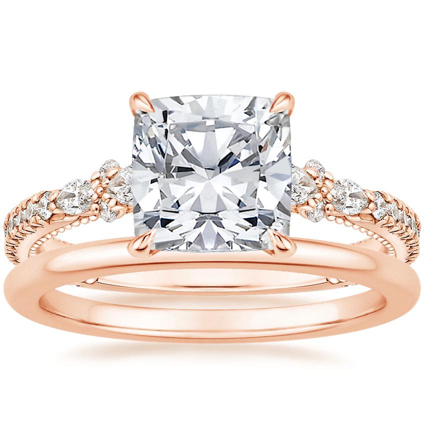 Primrose Diamond Ring with Petite Comfort Fit Wedding Ring in 14K Rose Gold