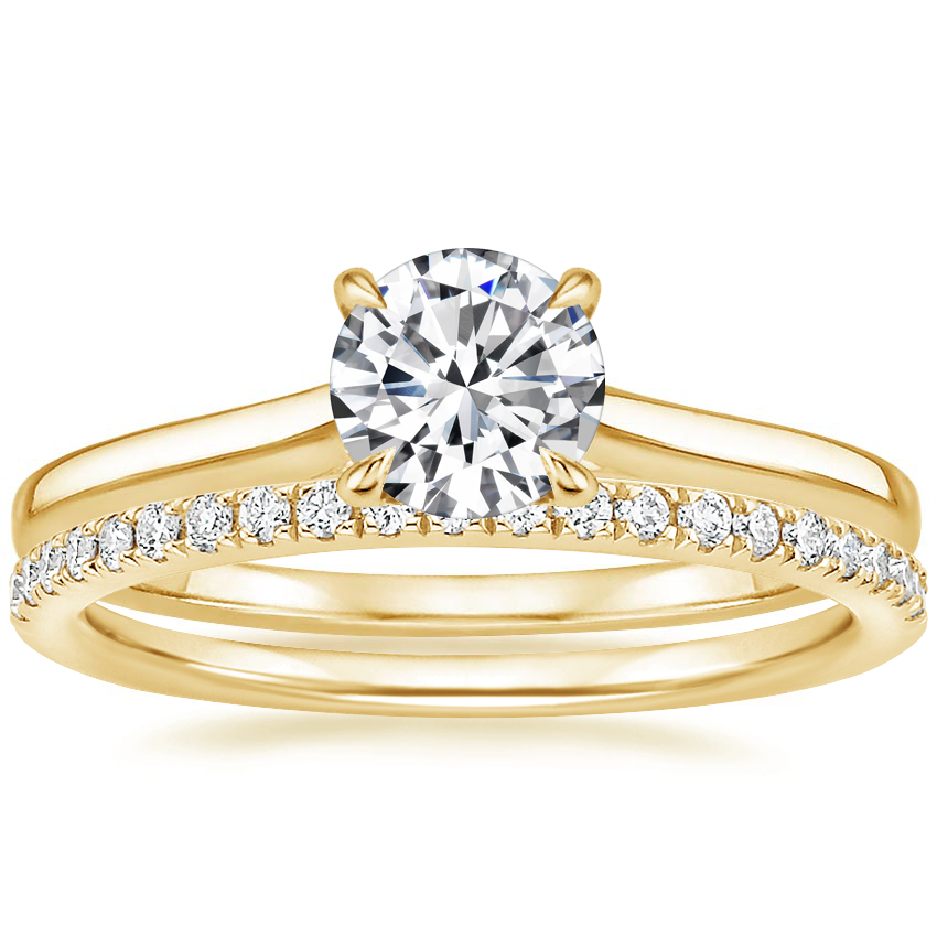 Great thin band cathedral style ring for the person who prefers smaller jewellery instead of chucky bands (or someone like me with short fingers) . The style allows another band to slip in snugs. I had a diamond upgrade done with the brilliant earth and I'm very happy! Will return in a few years for another diamond upgrade treat to myself :)