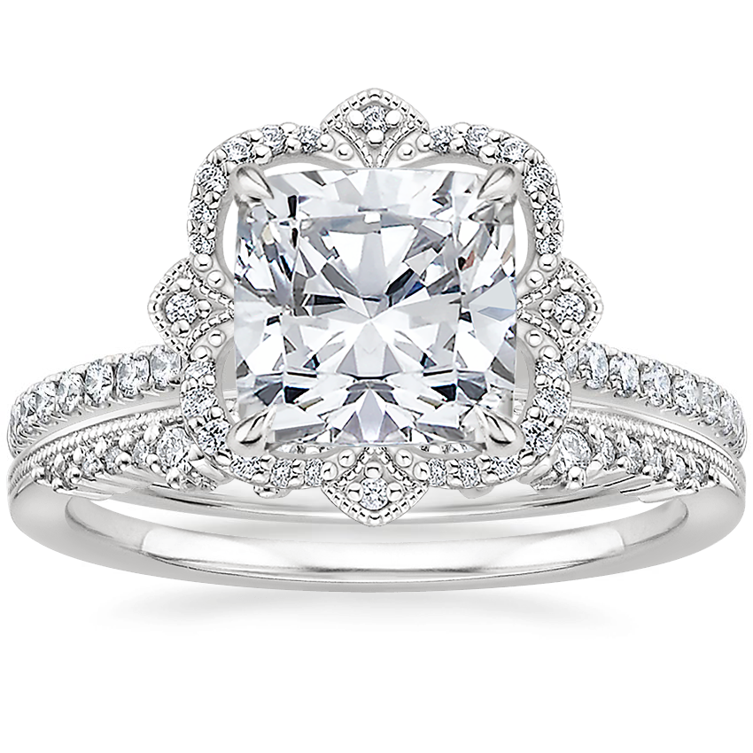 I knew I wanted a rose gold ring in a vintage-inspired setting, and the Reina Halo is absolute perfection! I purchased my ring entirely online (not from a showroom) and I got mine set with a 7mm cushion-cut premium moissanite. While thin and dainty, the pavé band is definitely more durable than I thought it would be. It is so comfortable to wear, and while the gem sits a little higher than I would prefer, I'm sure this is to comfortably accommodate my future wedding band. Overall I had a fantastic experience with customer service, ordering online, and receiving my purchase. I highly recommend Brilliant Earth, their rose gold options, their moissanite gemstones, and the Reina Halo setting!