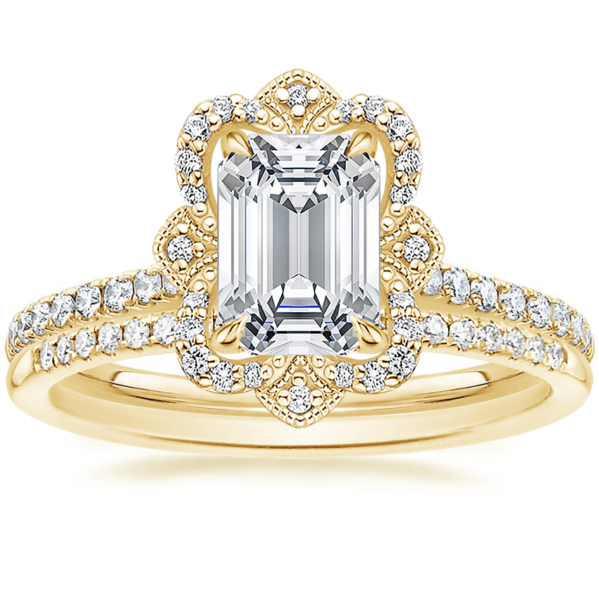 18K Yellow Gold Reina Diamond Ring (1/4 ct. tw.) with Whisper Diamond Ring (1/10 ct. tw.)