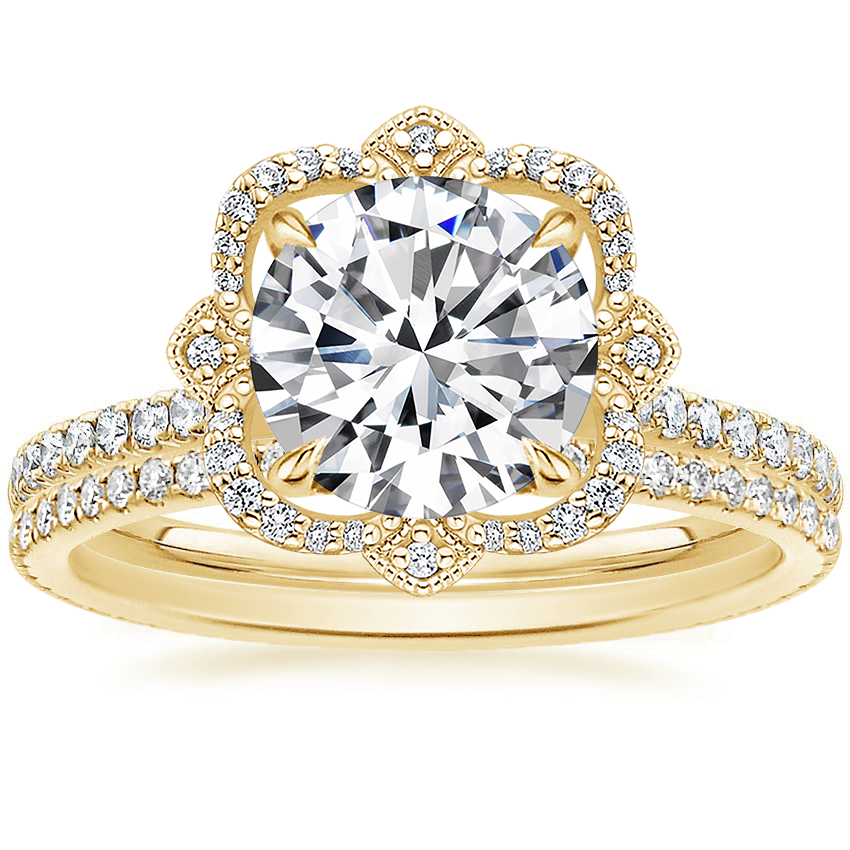 18K Yellow Gold Reina Diamond Ring (1/4 ct. tw.) with Whisper Eternity Diamond Ring (1/4 ct. tw.)