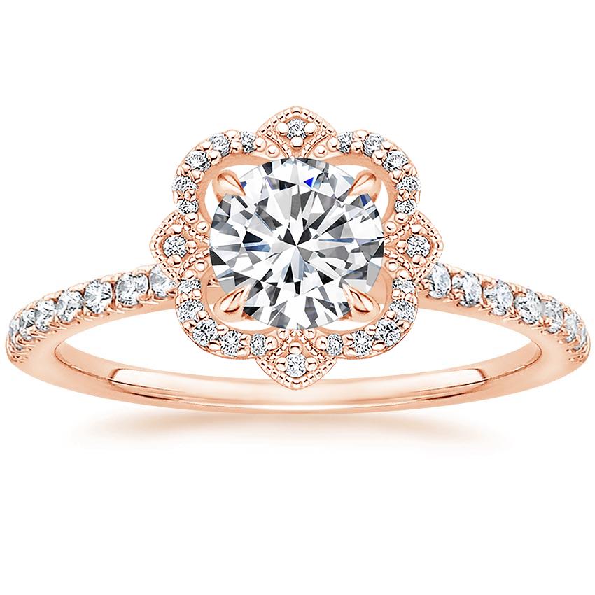 I knew I wanted a rose gold ring in a vintage-inspired setting, and the Reina Halo is absolute perfection! I purchased my ring entirely online (not from a showroom) and I got mine set with a 7mm cushion-cut premium moissanite. While thin and dainty, the pavé band is definitely more durable than I thought it would be. It is so comfortable to wear, and while the gem sits a little higher than I would prefer, I'm sure this is to comfortably accommodate my future wedding band. Overall I had a fantastic experience with customer service, ordering online, and receiving my purchase. I highly recommend Brilliant Earth, their rose gold options, their moissanite gemstones, and the Reina Halo setting!