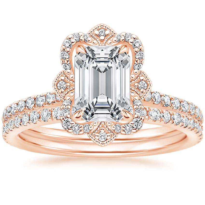 14K Rose Gold Reina Diamond Ring with Luxe Ballad Diamond Ring (1/4 ct. tw.) with 2.0 Carat Emerald Diamond